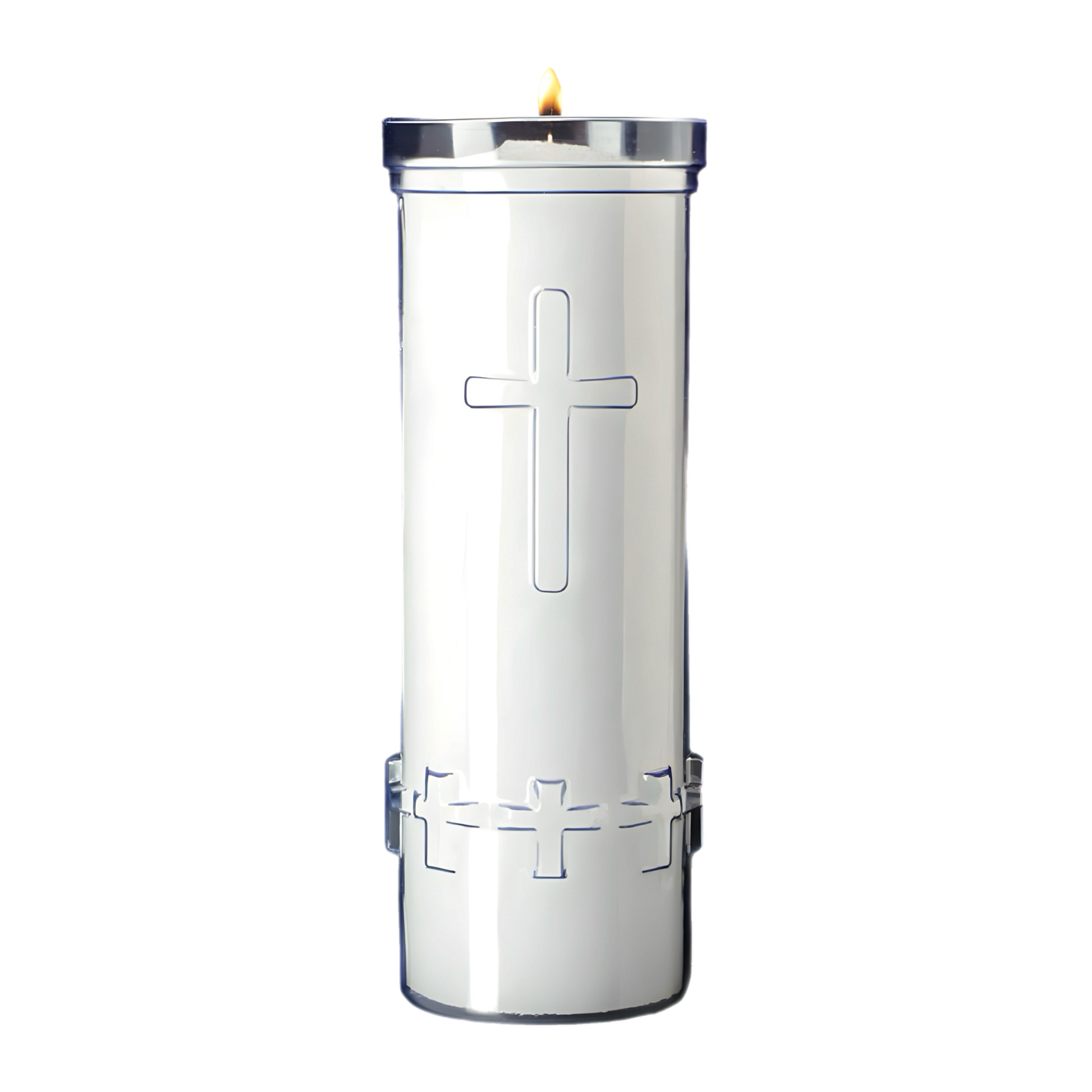 The Divine Presence 7-Day Sanctuary Lights are made in unbreakable plastic. Made from select refined waxes for dependable performance. The Divine Presence Candles are designed for use in glass sanctuary globes.