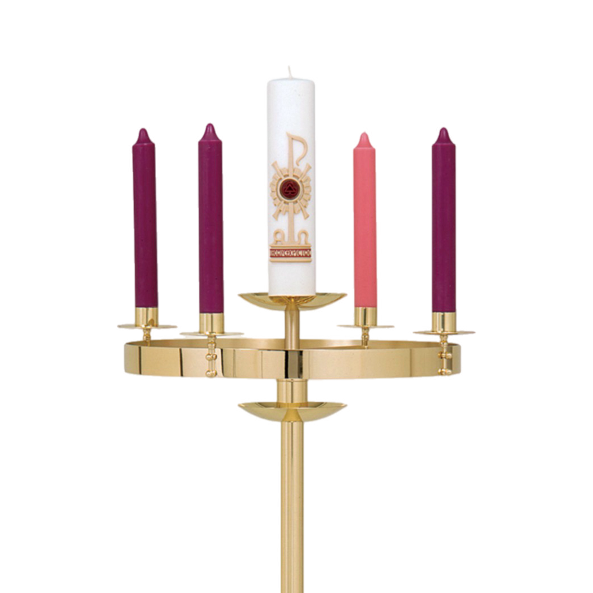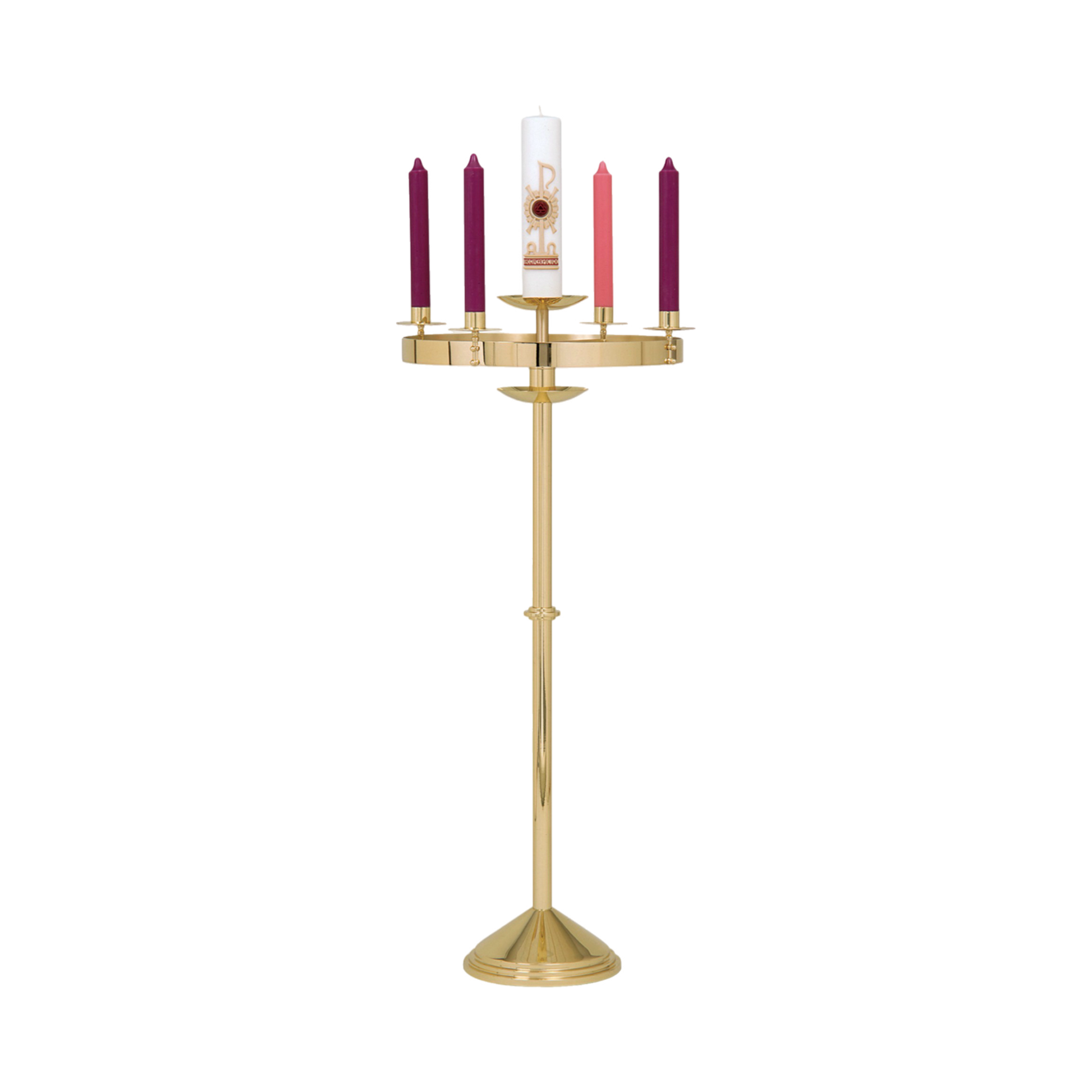 Advent Wreath and Paschal Candle holder combination. The Advent Wreath is removable with the stand becoming a Paschal Candle holder. The Advent Wreath is also available without the stand. You may choose this in OPTIONS.