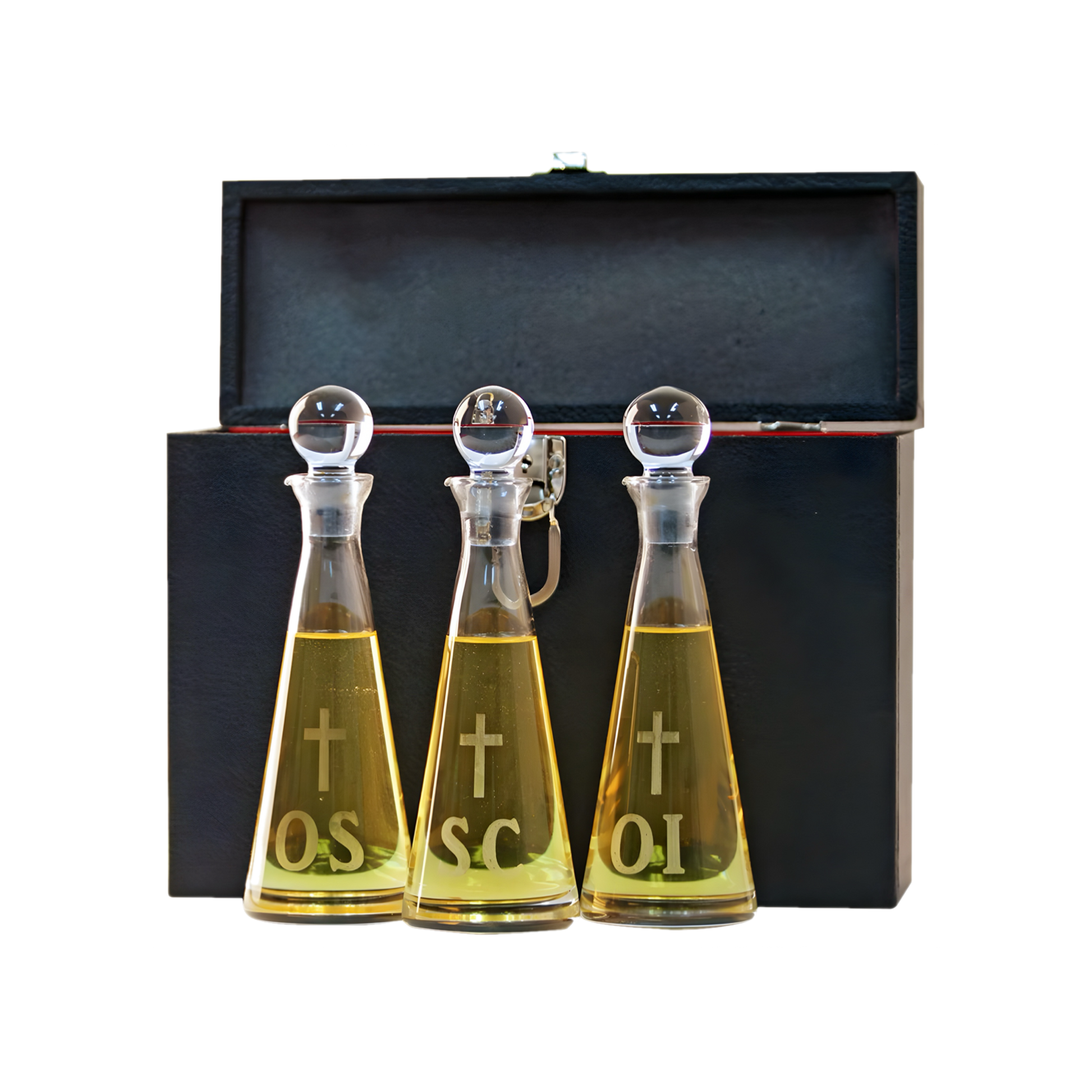 Hand-cut imported crystal with pouring lip. Engraved OI, OS, SC.