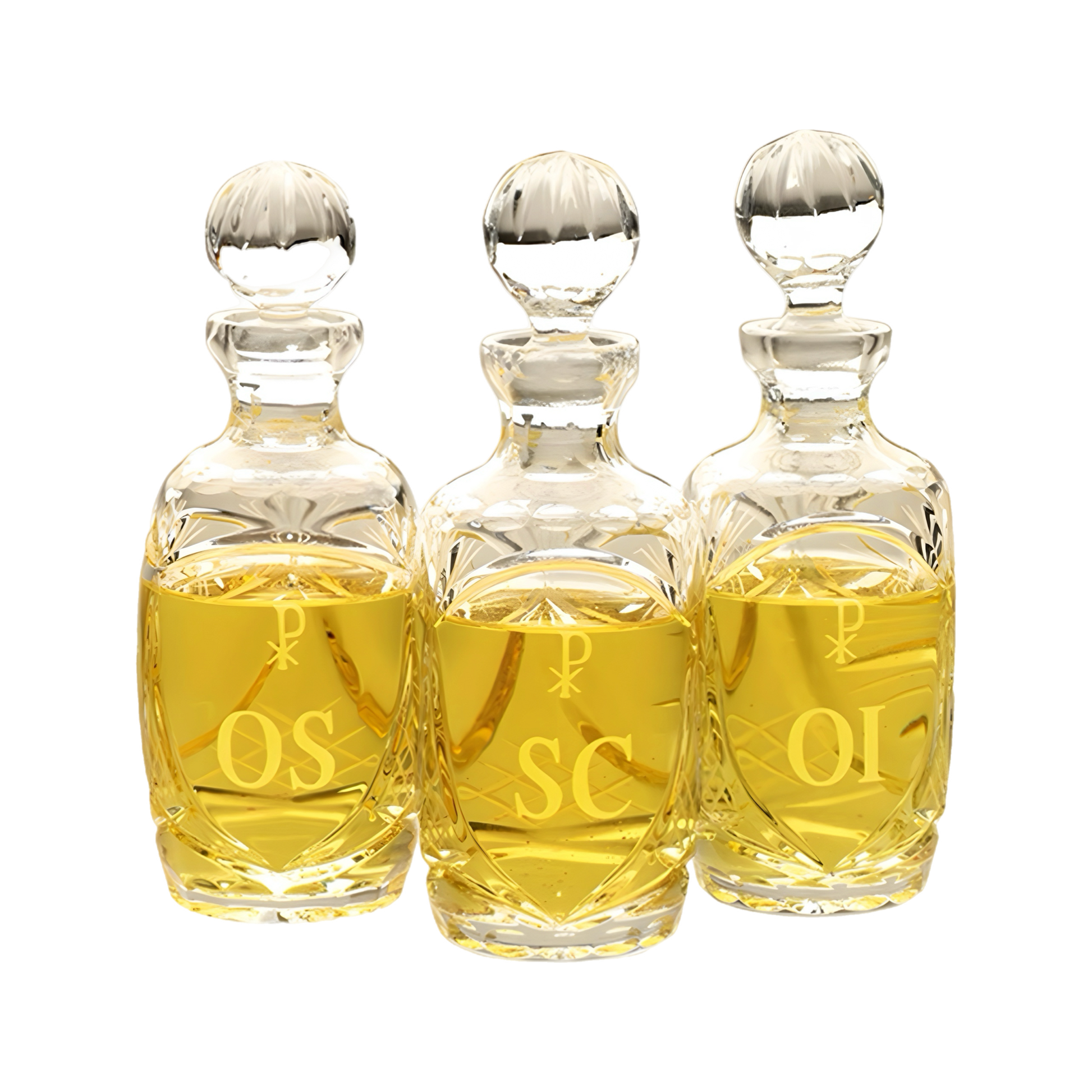 Hand-cut imported crystal. Engraved OI, OS, SC. Also available in OC. 7-1/4" H. including stopper. 2-1/8" dia. base, 8 oz. cap. Set of 3.