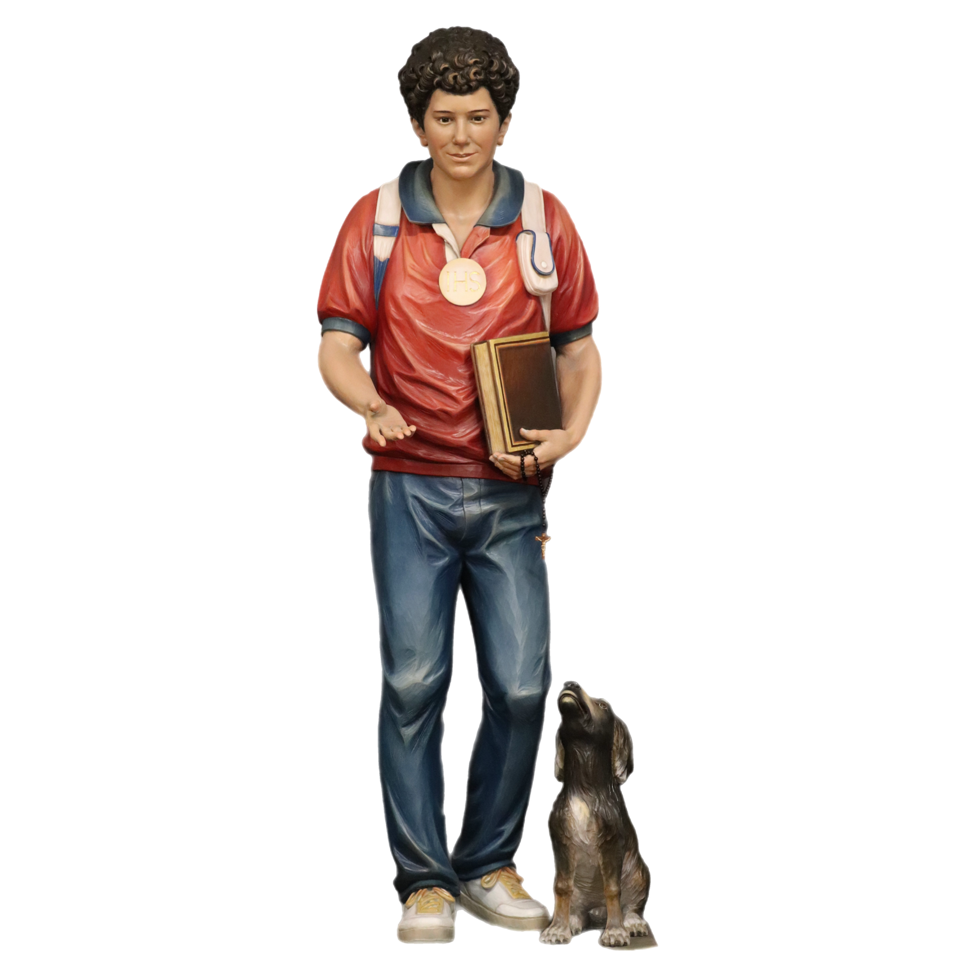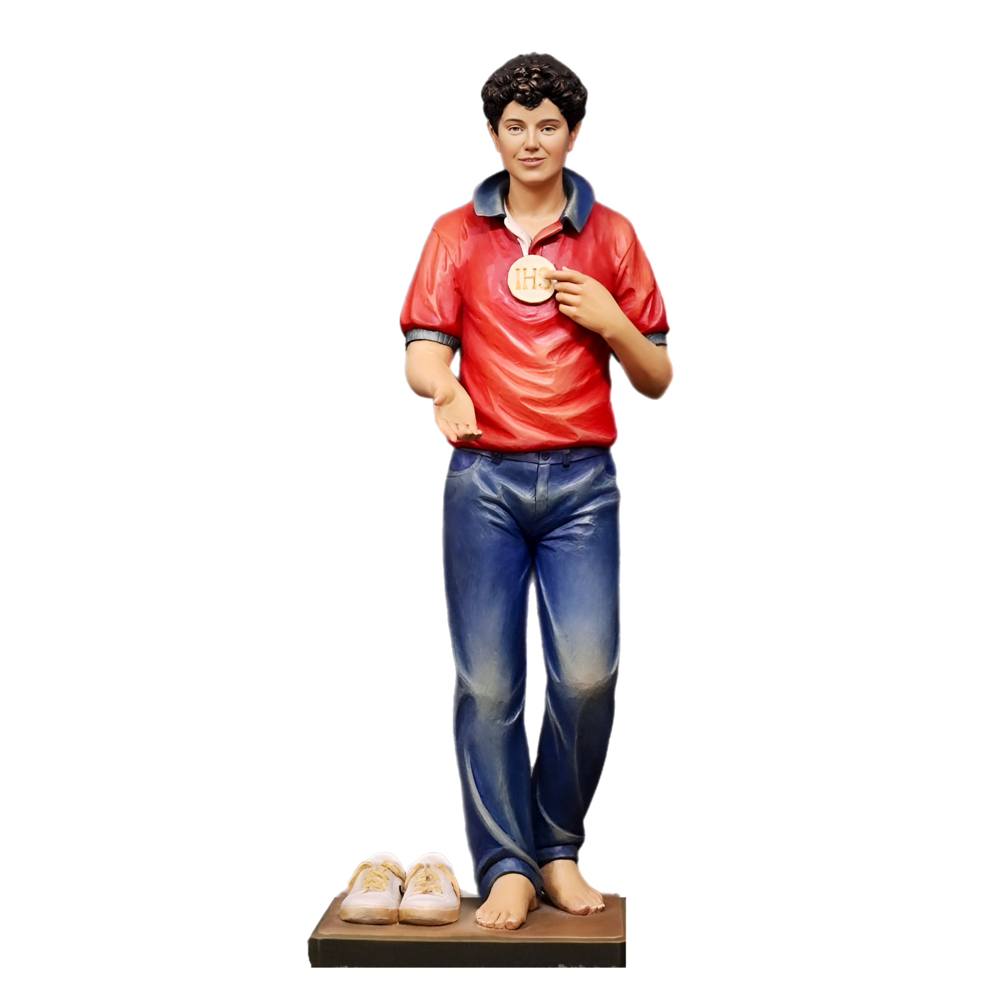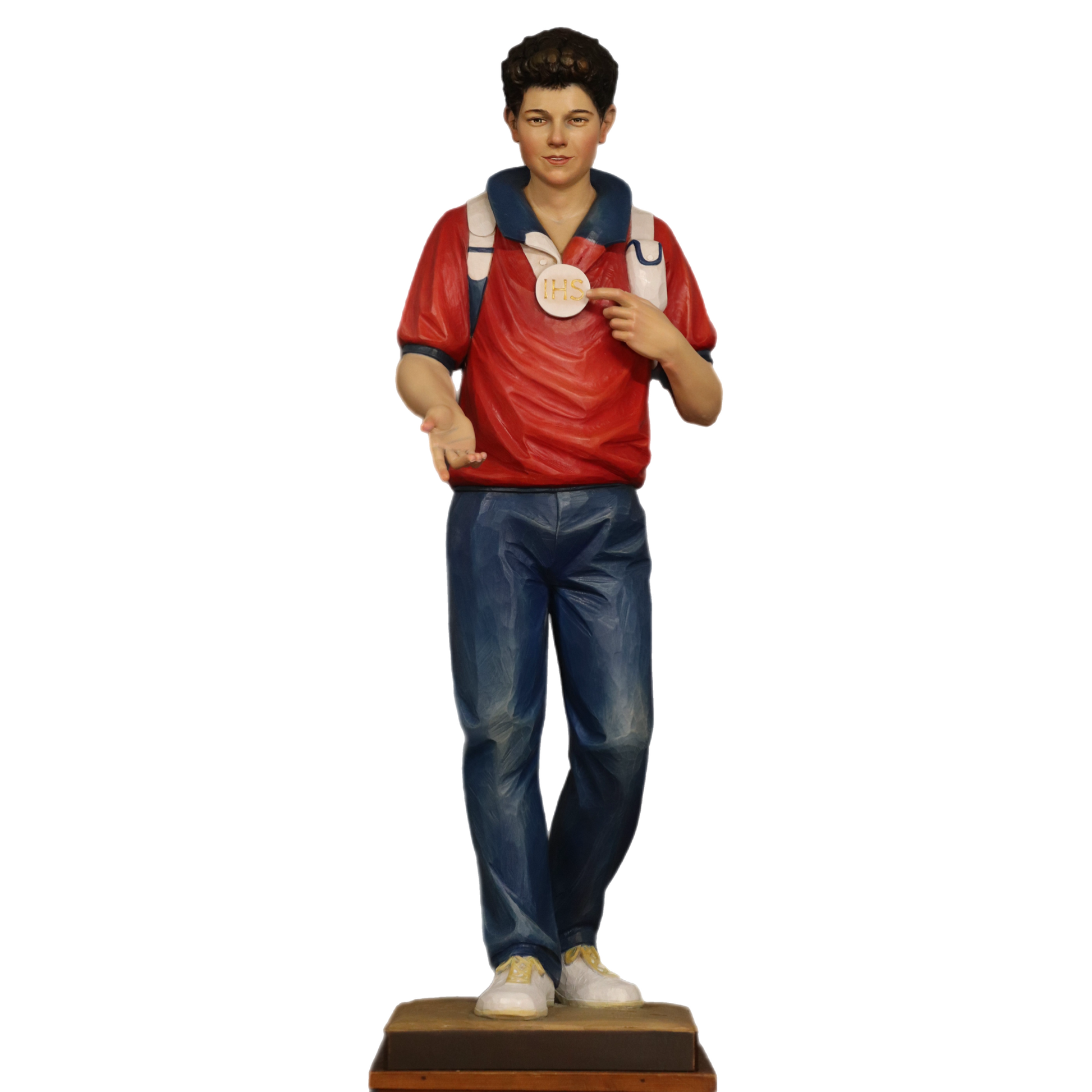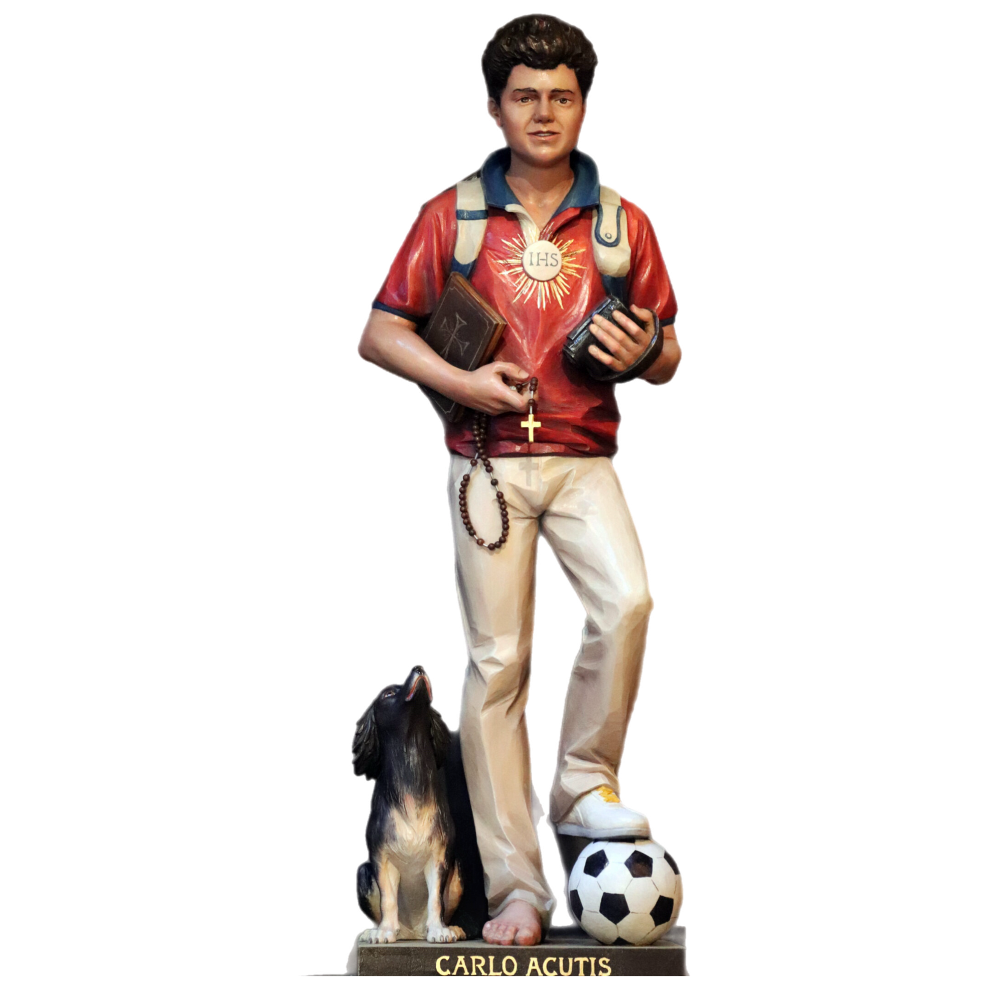 These Custom, Beautifully Wood Carved Statues, of Carlo Acutis are hand-crafted by the finest European Artisan Sculptors. These renditions of our First Millennial Saint are designed to show Carlo's devotion to the Holy Eucharist.