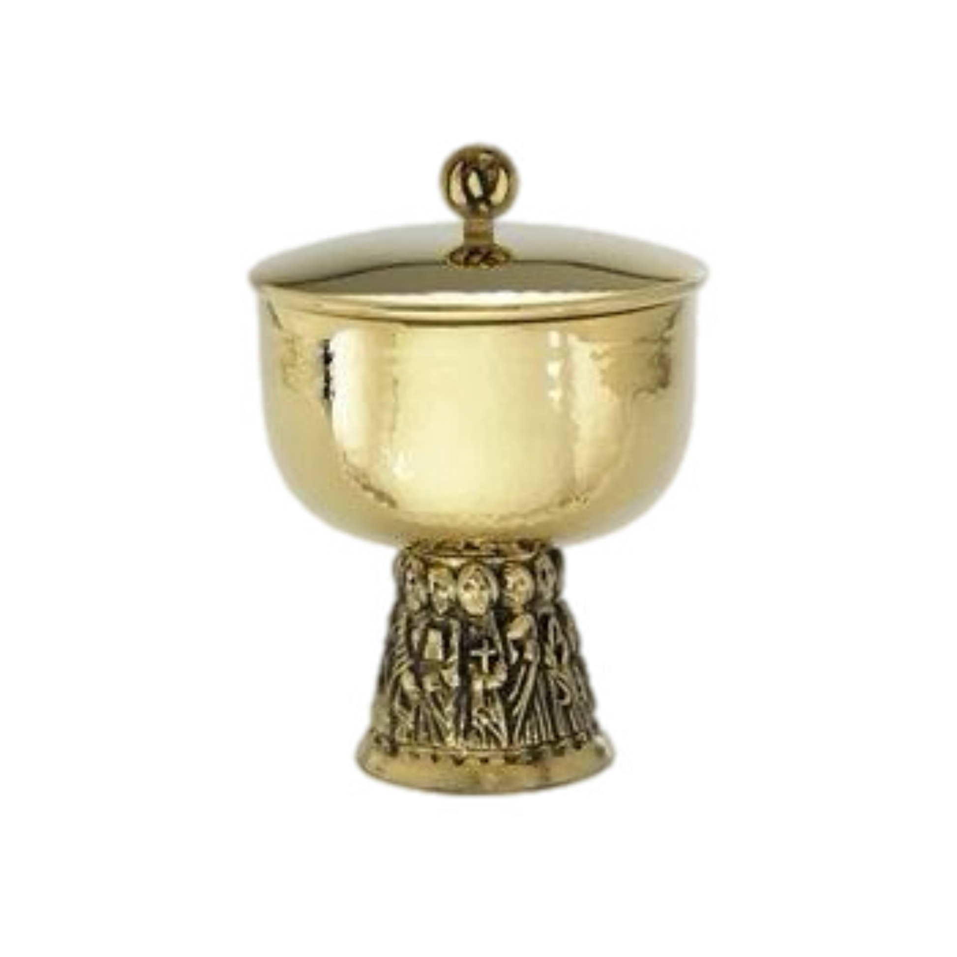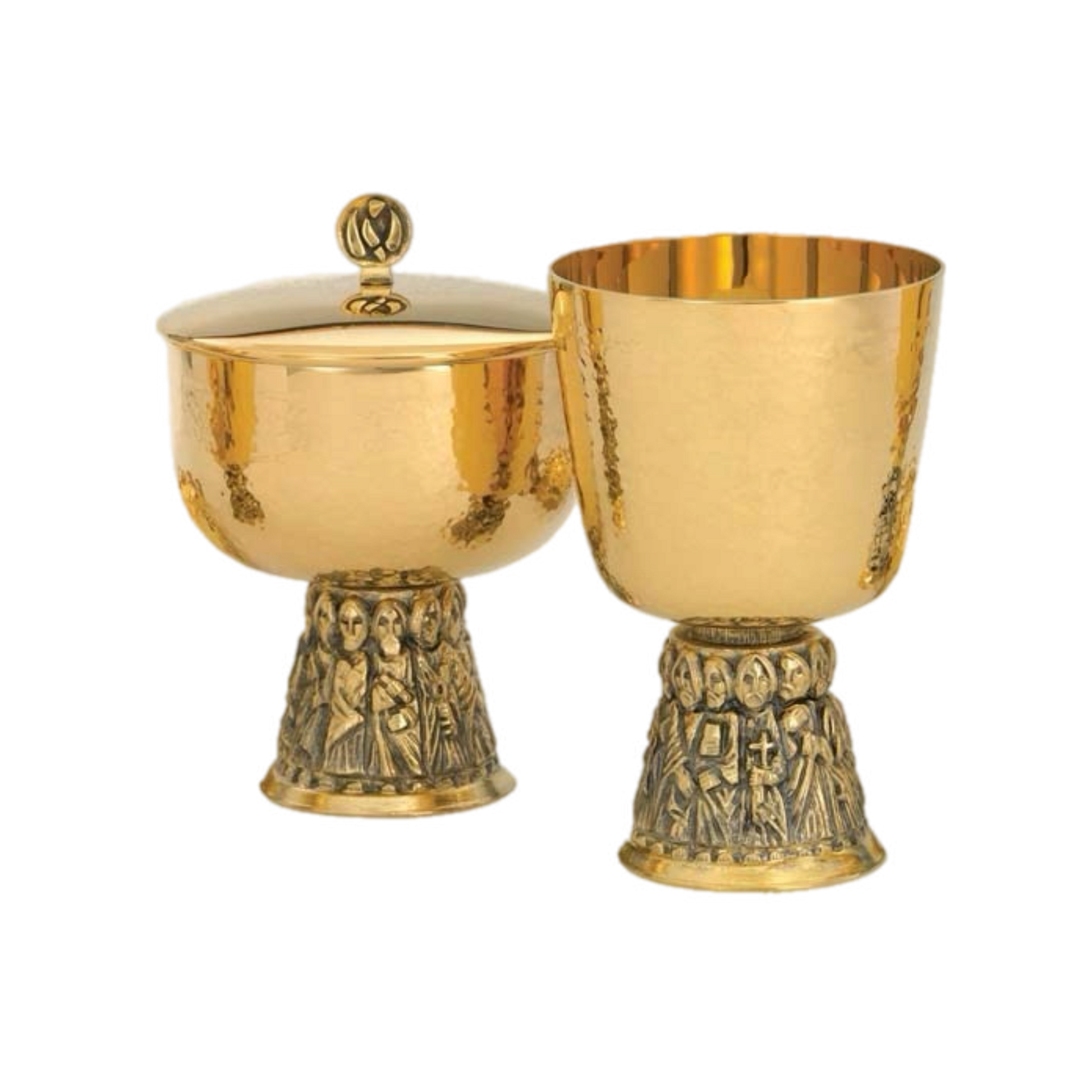 Beautifully made Chalice plated in 24K gold with Apostles base and Hammered Textured cup.