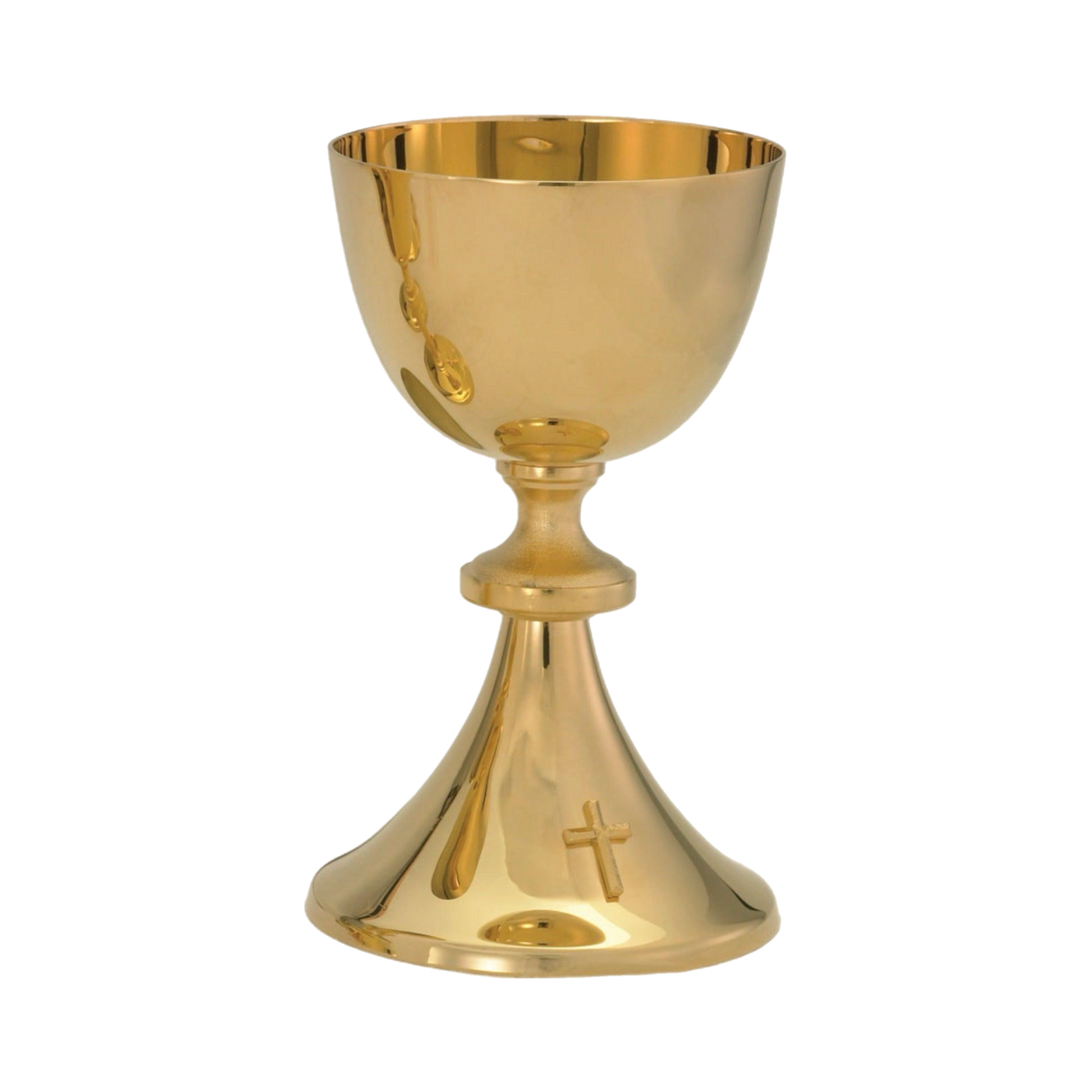 This Chalice has a height of 7-1/2″ with a 12 oz. capacity. The Chalice is made of 24k Gold Plated brass and has a High Polish Finish.