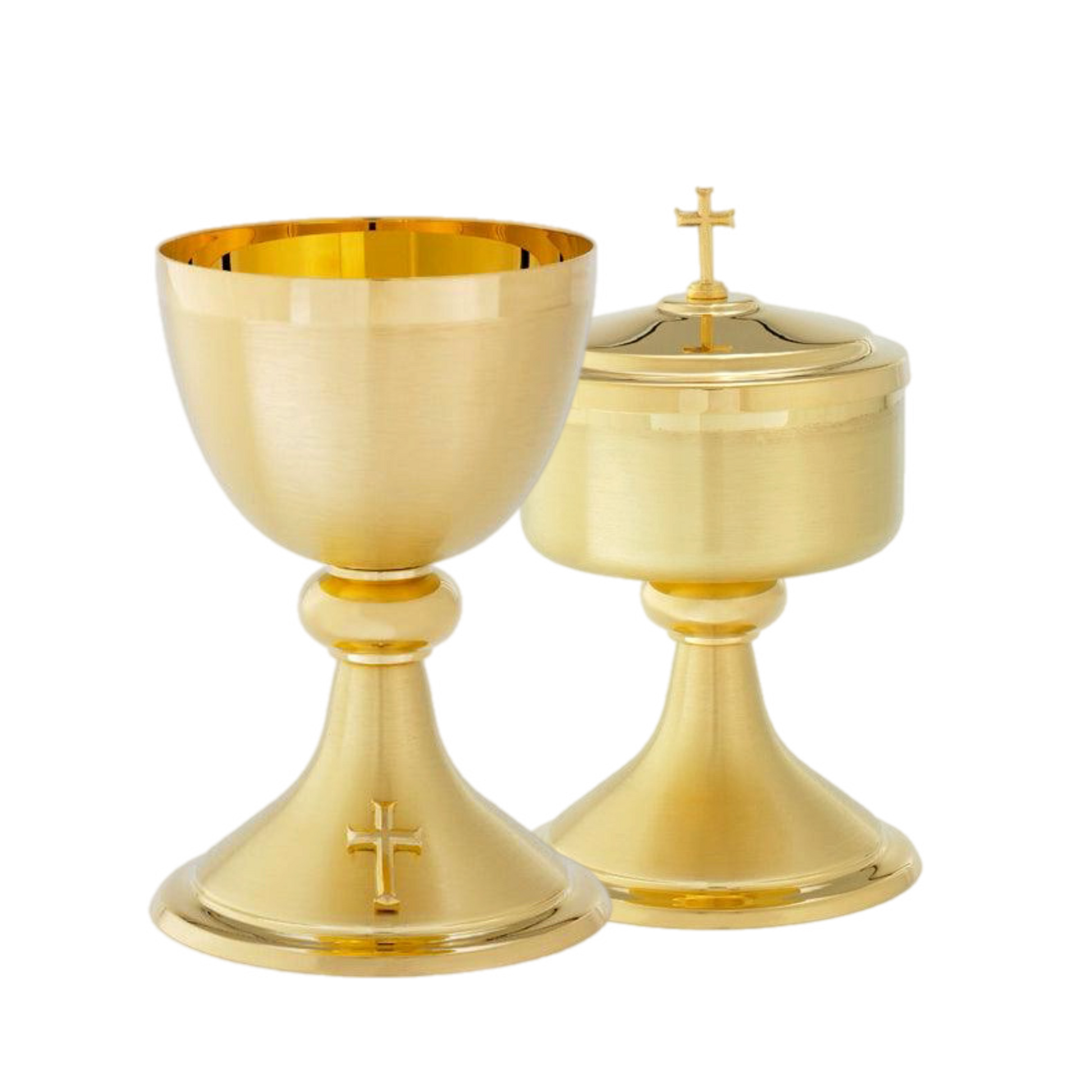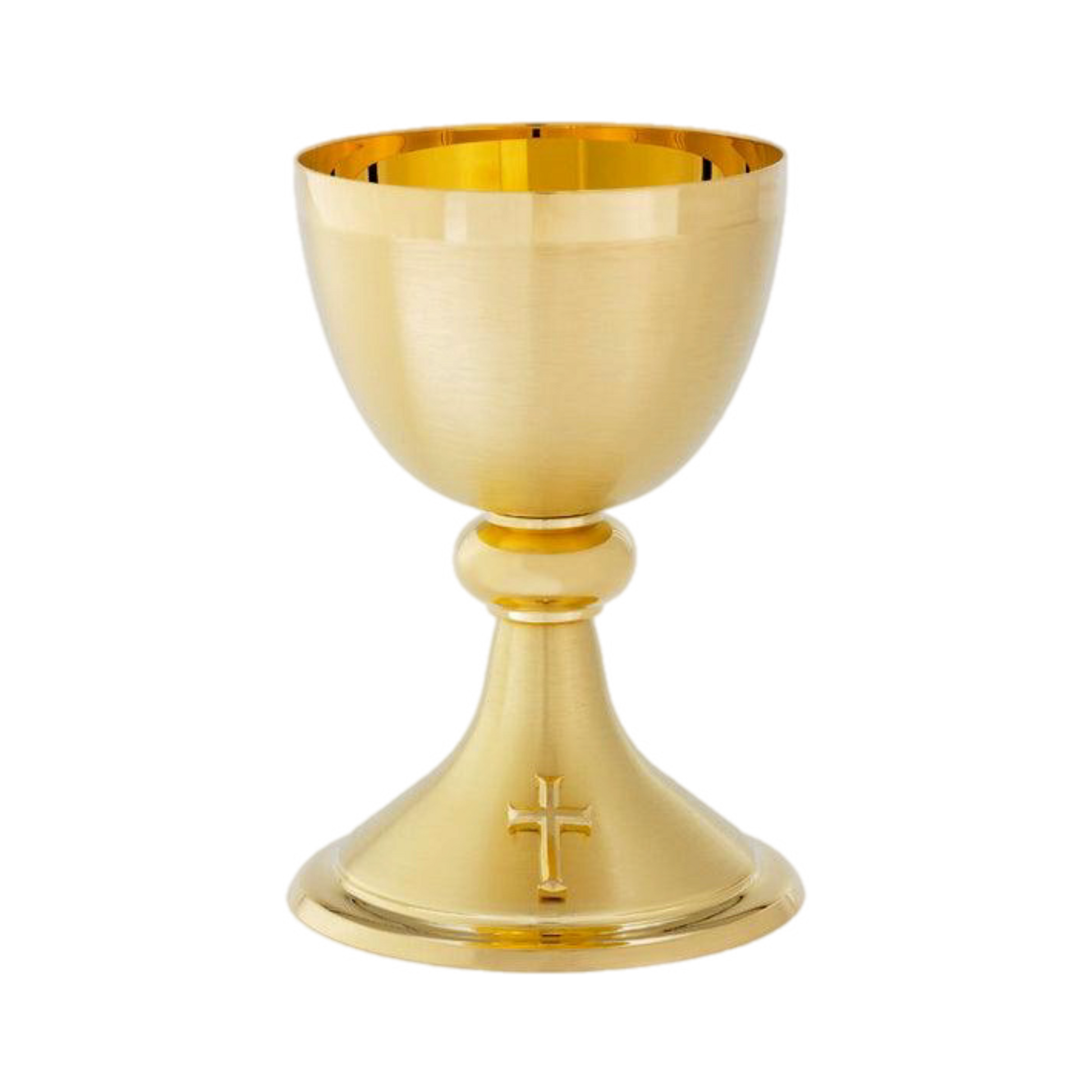 Beautifully crafted Satin Finish Chalice plated in 24k gold with simple gold cross accent.