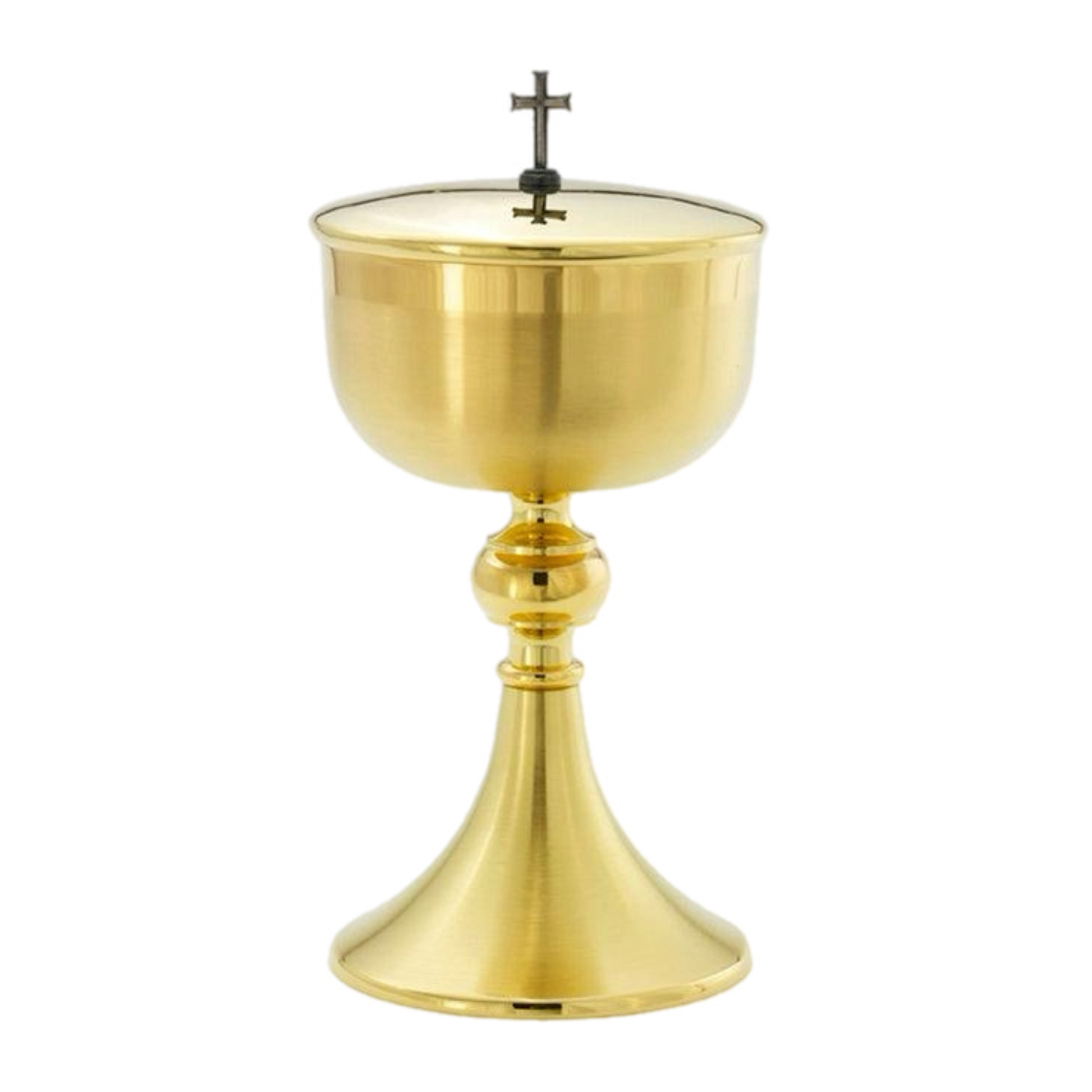 This Ciborium is made with a 24k Gold Plated Satin Finish. It has a 225 Host capacity and stands 9-3/4″ tall.