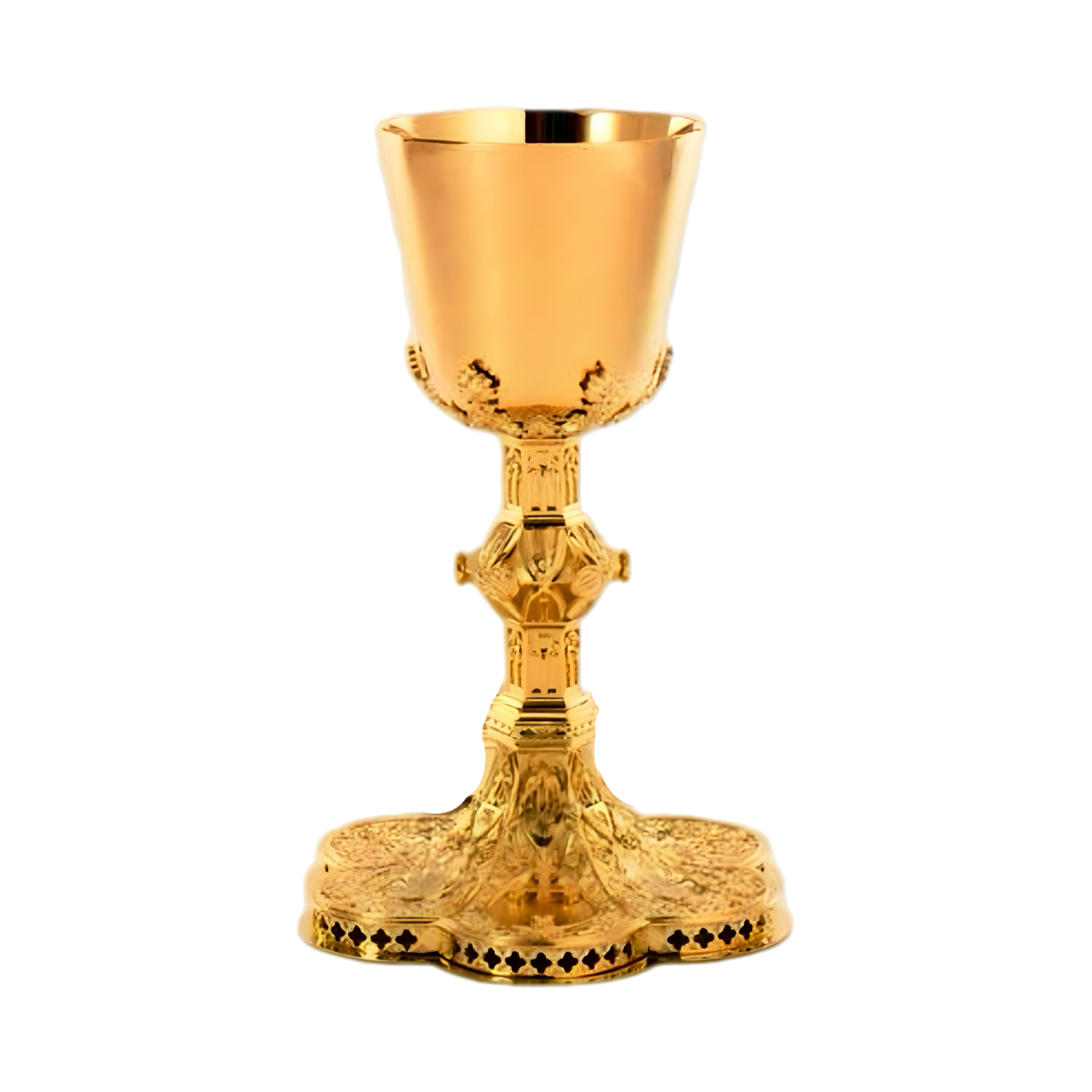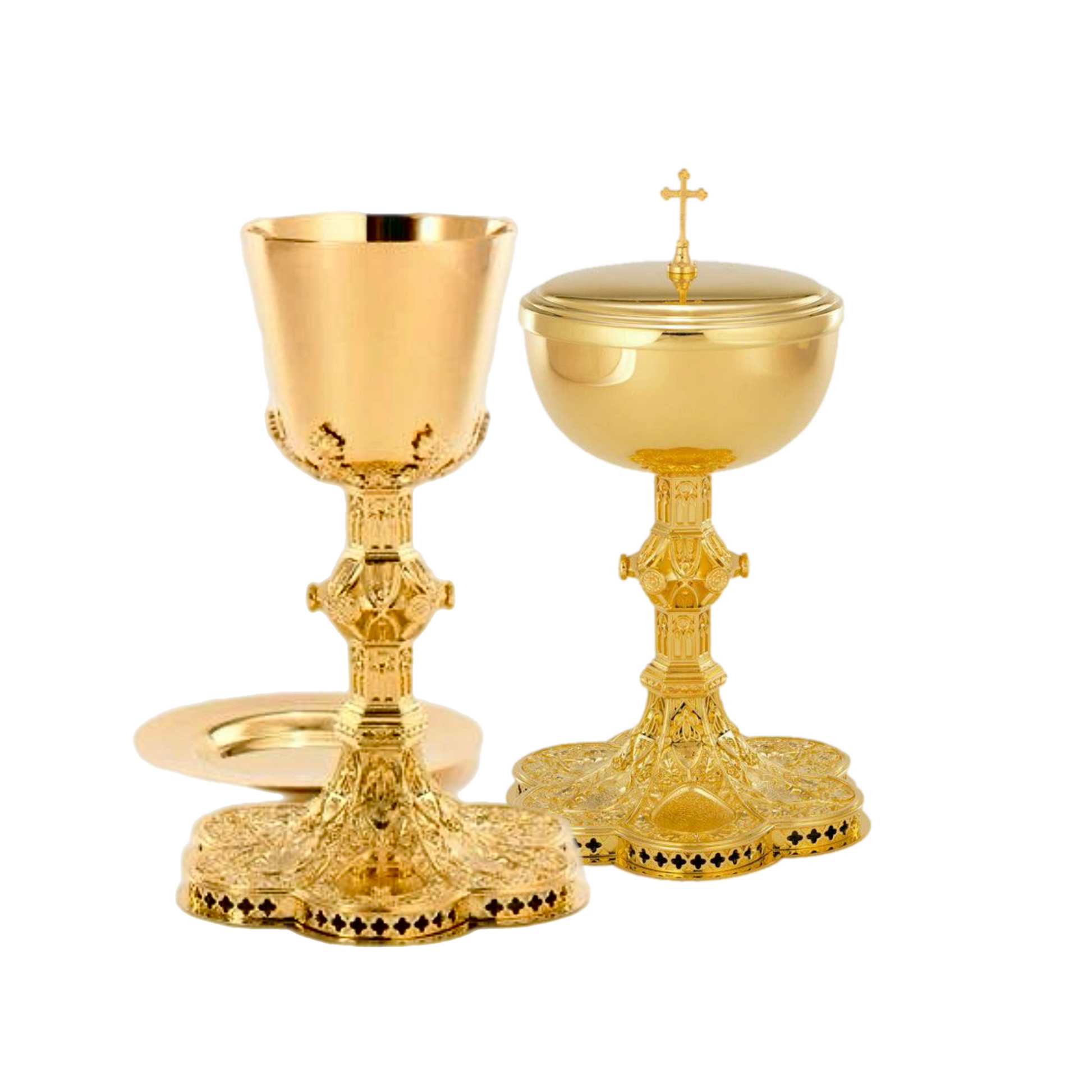 The 9783G Ciborium has a combination High Polished and Satin 24 KT Gold Plated Finishes. The inside of the Cup also is finished in a 24 KT High Polished Gold. This Ciborium stands 10″ tall and has the capacity to hold 225, 1 3/8″ Hosts.