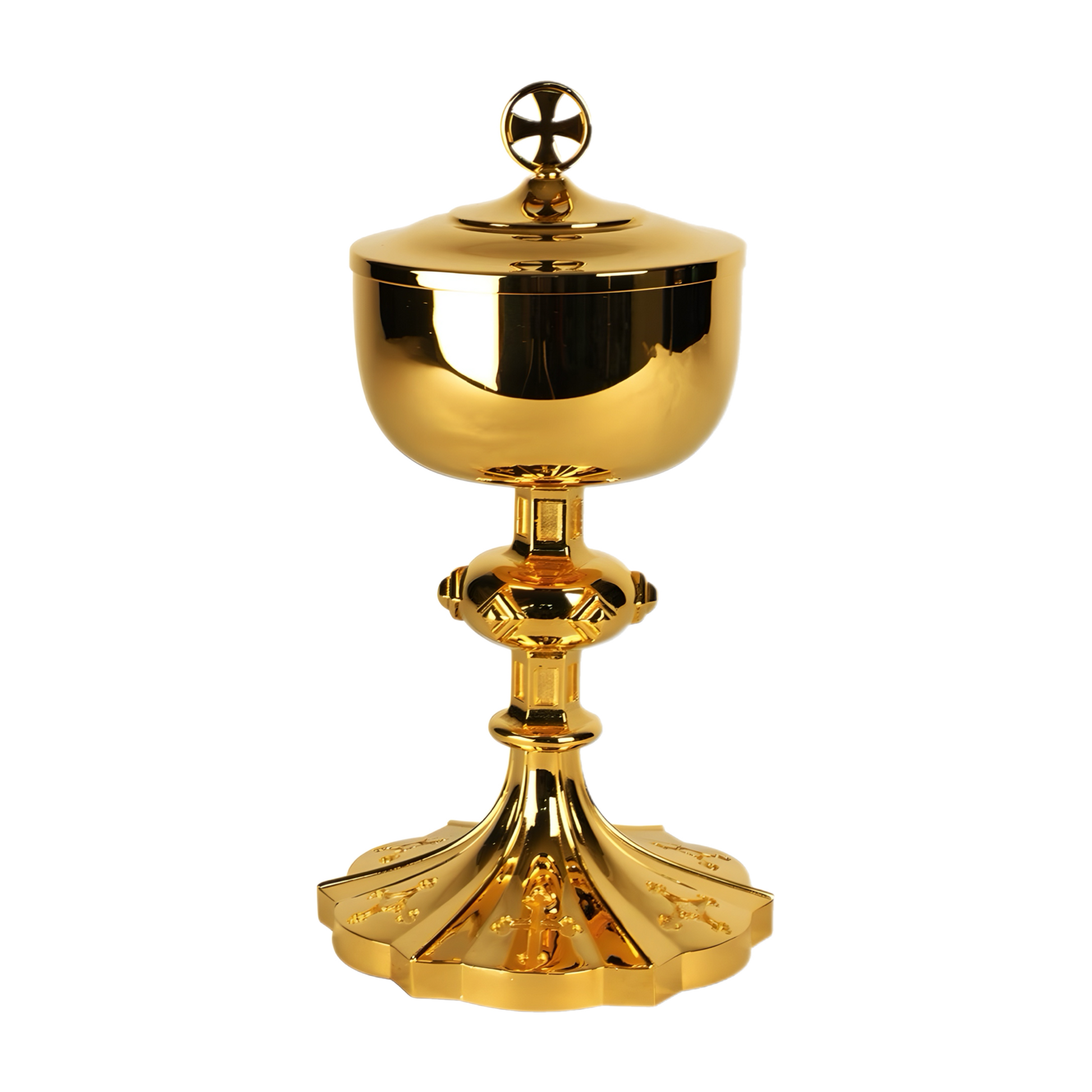 The Ciborium is 10-1/4"., with a 4-1/2" dia. cup and 5-1/2" base. The cup host capacity is 400.