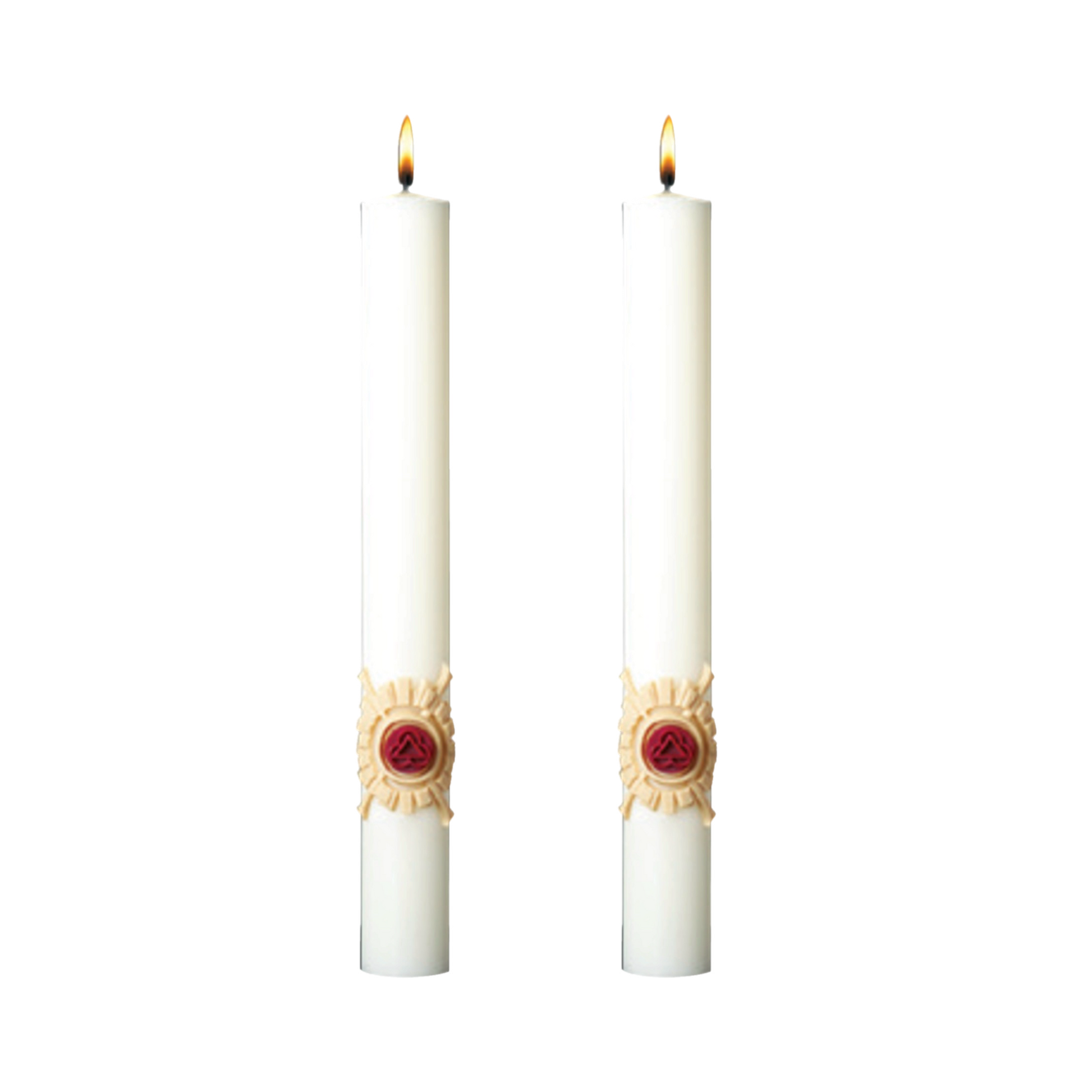 These attractive 51% Altar Candles complementing The HOLY TRINITY Paschal Candle, act to enhance the presence of the matching Paschal Candle creating a perfect decorative touch.