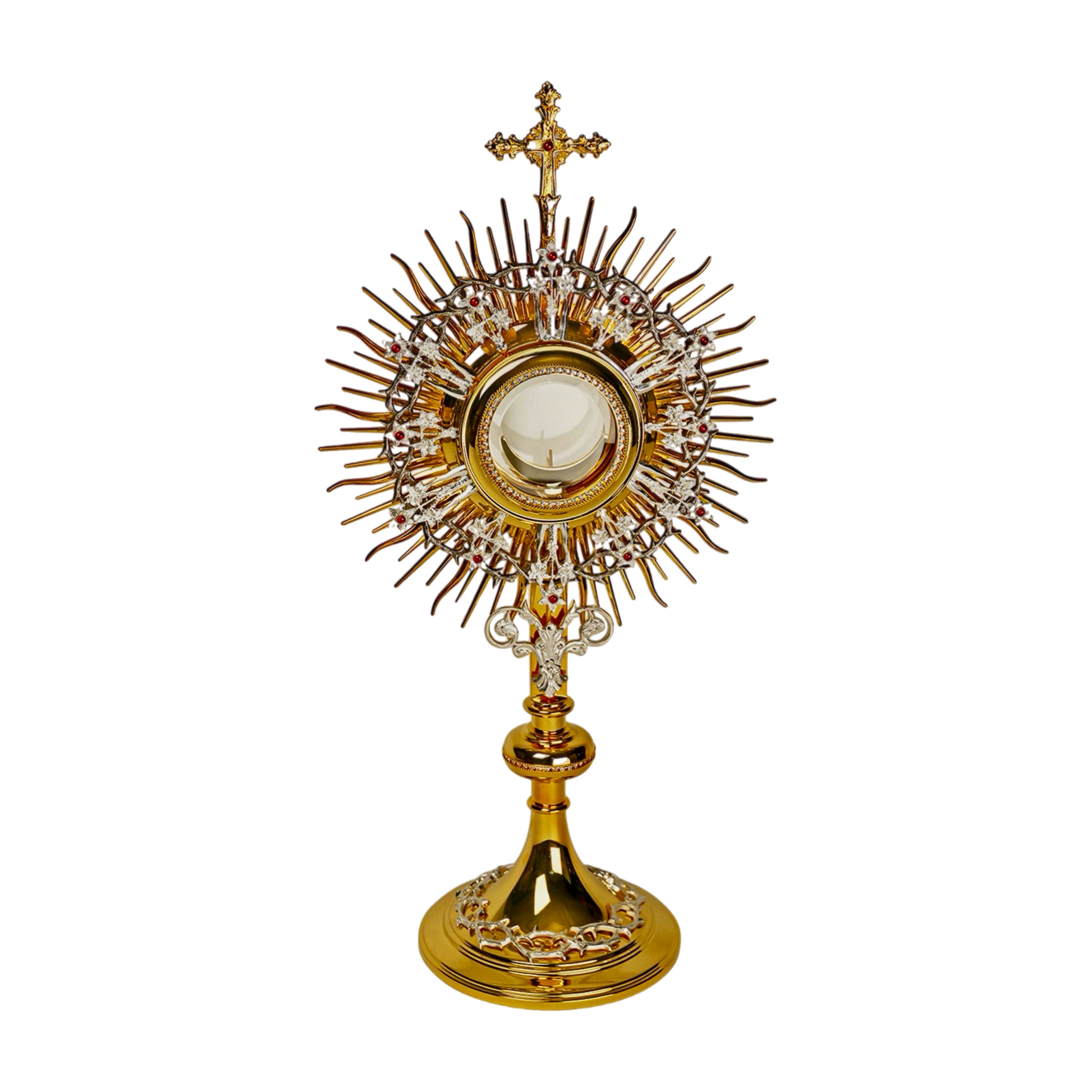 24K Gold Plated Monstrance with Silver Plated highlights.