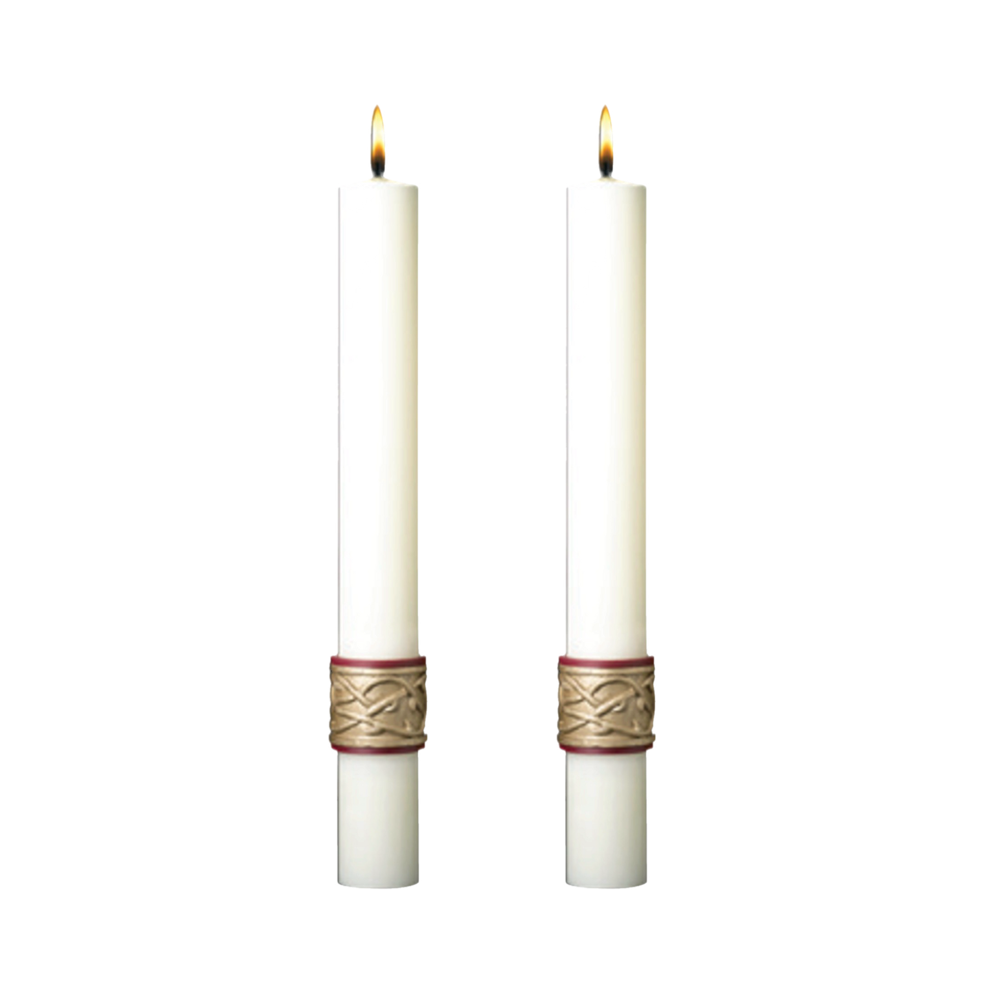 These attractive 51% Altar Candles complementing The SACRED HEART Paschal Candle, act to enhance the presence of the matching Paschal Candle creating a perfect decorative touch.