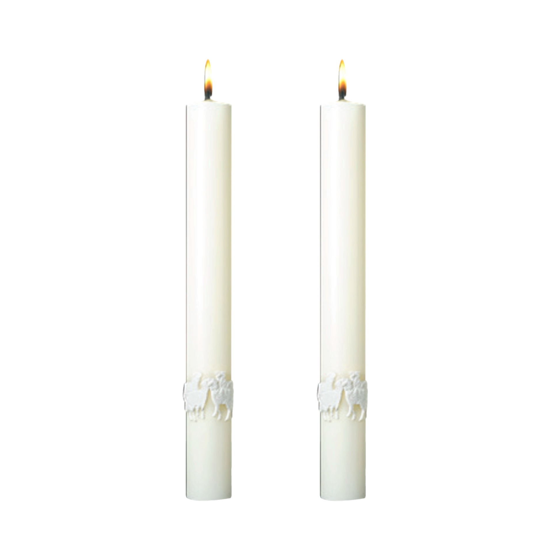 These attractive 51% Altar Candles complementing The GOOD SHEPHERD Paschal Candle, act to enhance the presence of the matching Paschal Candle creating a perfect decorative touch.